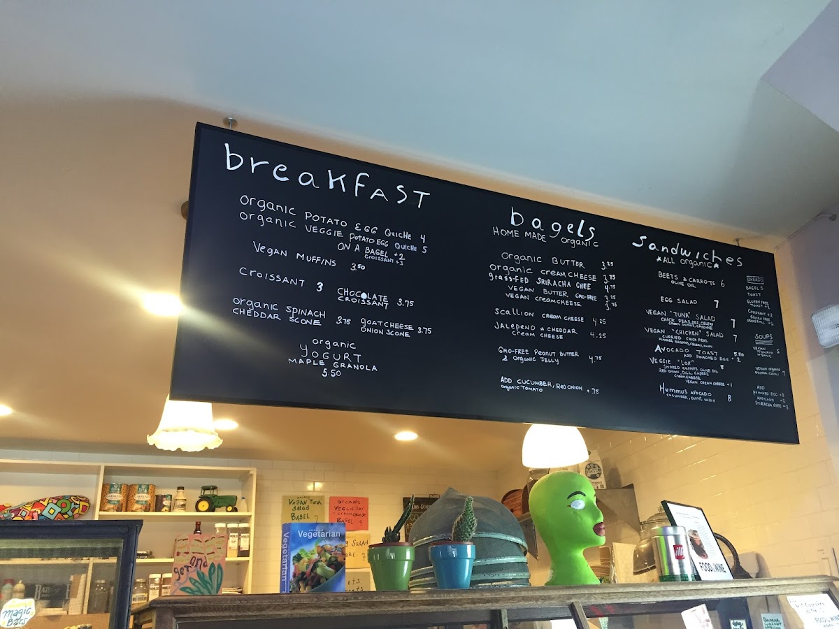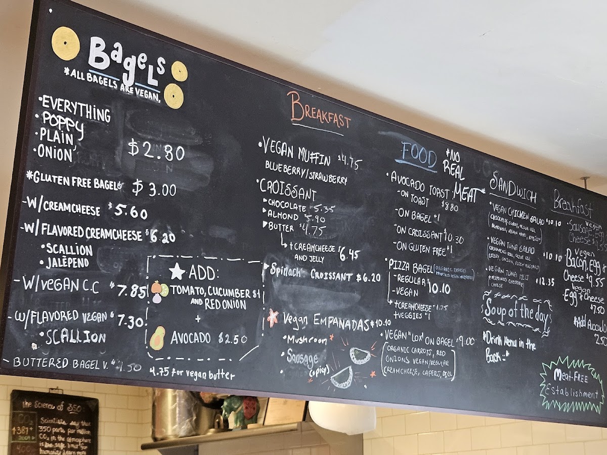 For breakfast at any time of day, you can enjoy a range of pastries and baked goods. The Vegan & Gluten-Free Pumpkin Spice Muffin and Spinach Ricotta Croissant are great choices, as are the rich Banana Walnut Coffee Cake and the classic Chocolate Croissant. If you're in the mood for something savory, the Homemade Vegan Tuna Salad on a Bagel or Vegan Chicken Salad on a Bagel offers a delicious, plant-based twist. For something lighter, try the Avocado Toast or the same on a bagel for added crunch.