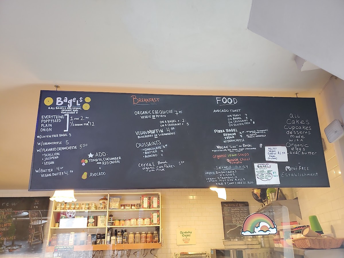 For those who love cookies, the Matcha White Chocolate Chip, Lemon Ricotta, and Vegan Chocolate Chip cookies are crowd-pleasers, while the Sugar Cookie offers a classic touch. Bagel fans can enjoy an assortment, including the Bagel with Vegan Scallion Cream Cheese or a Bagel with Vegan Egg, Sausage, & Cheese for a hearty option.